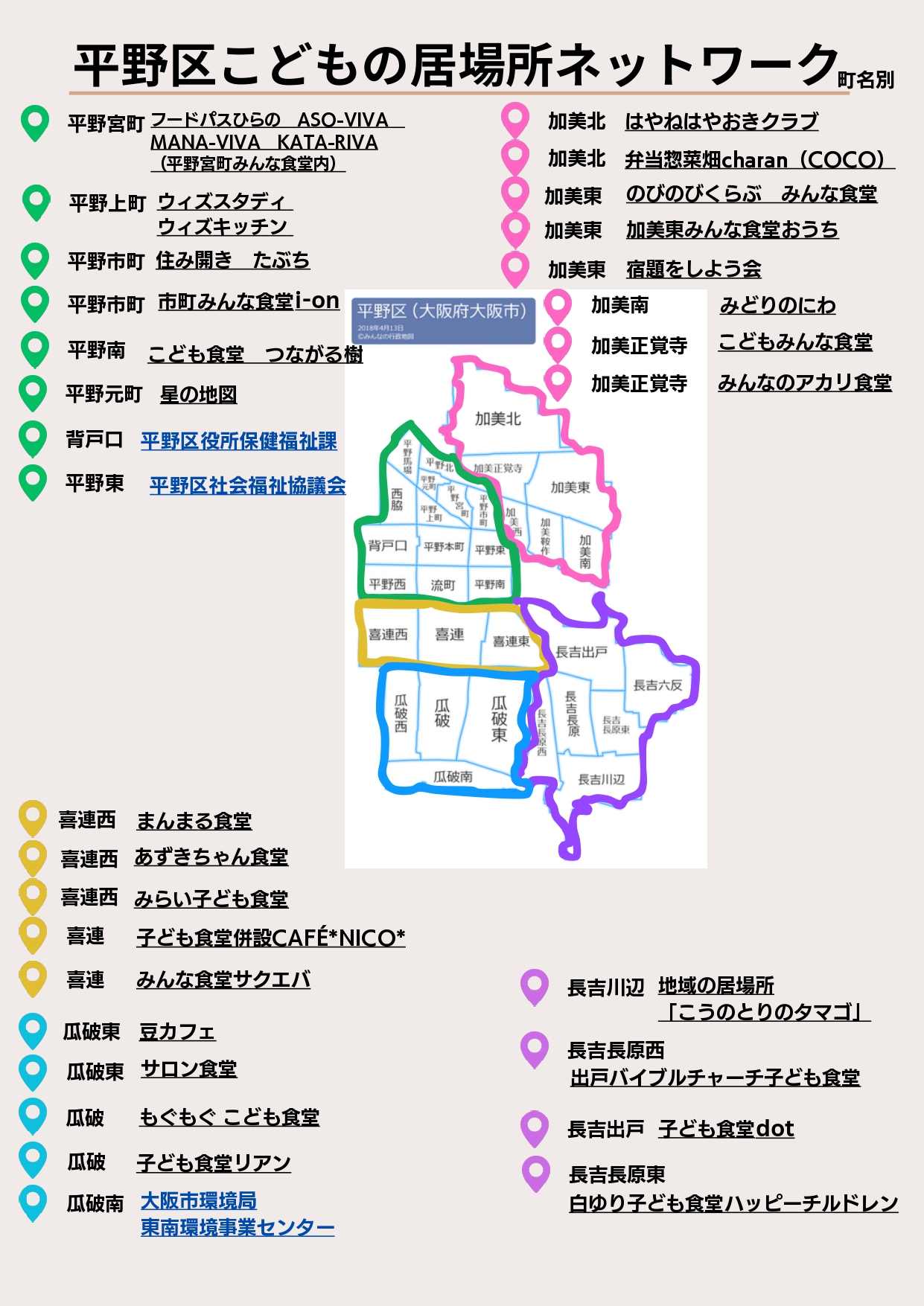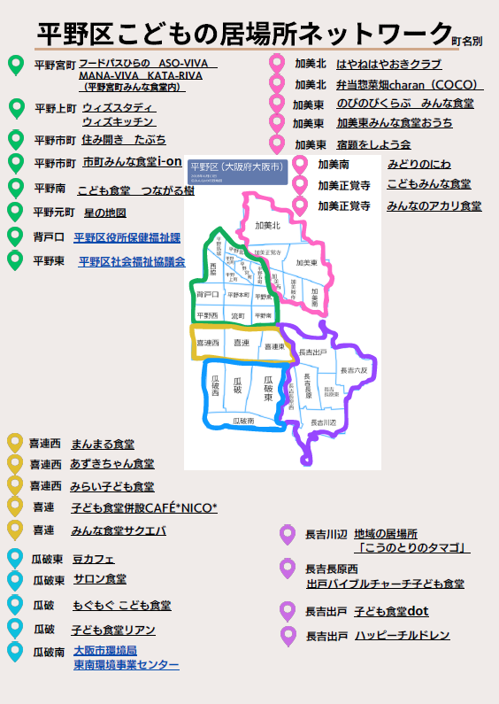 令和6年10月に「平野区こどもの居場所ネットワーク」ができました。ネットワーク加入団体のこどもの居場所マップはこちらから。