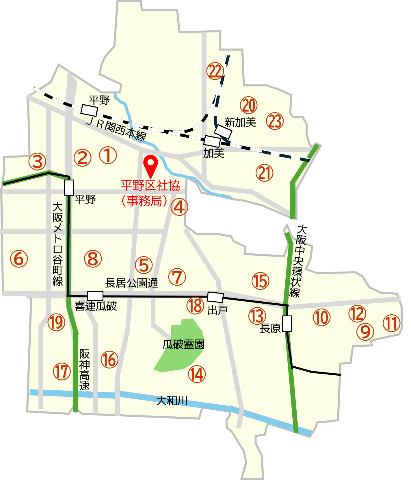 | 1 | 平野 | 平野連合会館内 | 平野上町2-5-22 | 06-6791-6662 |