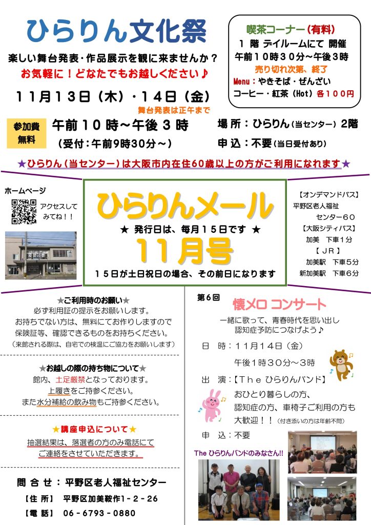 ひらりんメール(老人福祉センターだより)11月号を発行しました! |