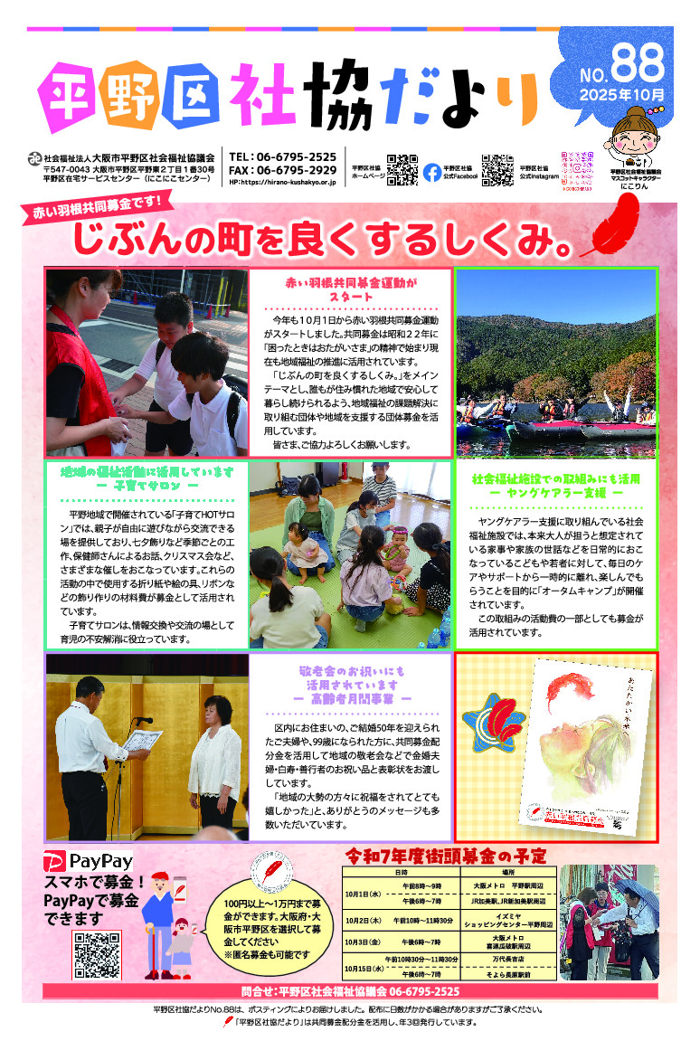 「平野区社協だより」は令和2年11月から全戸配布しています。