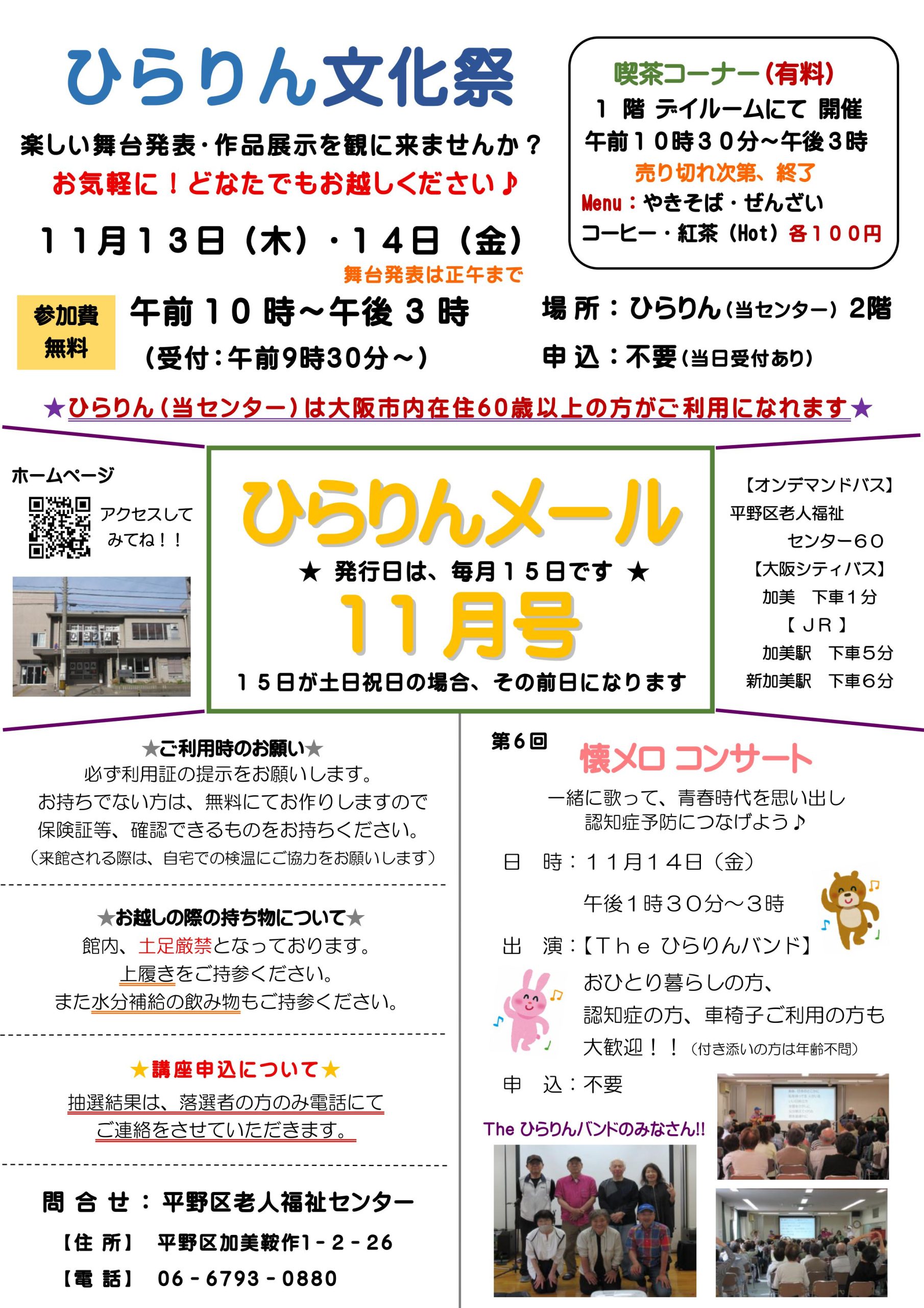 ひらりんメール(老人福祉センターだより)11月号を発行しました!